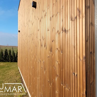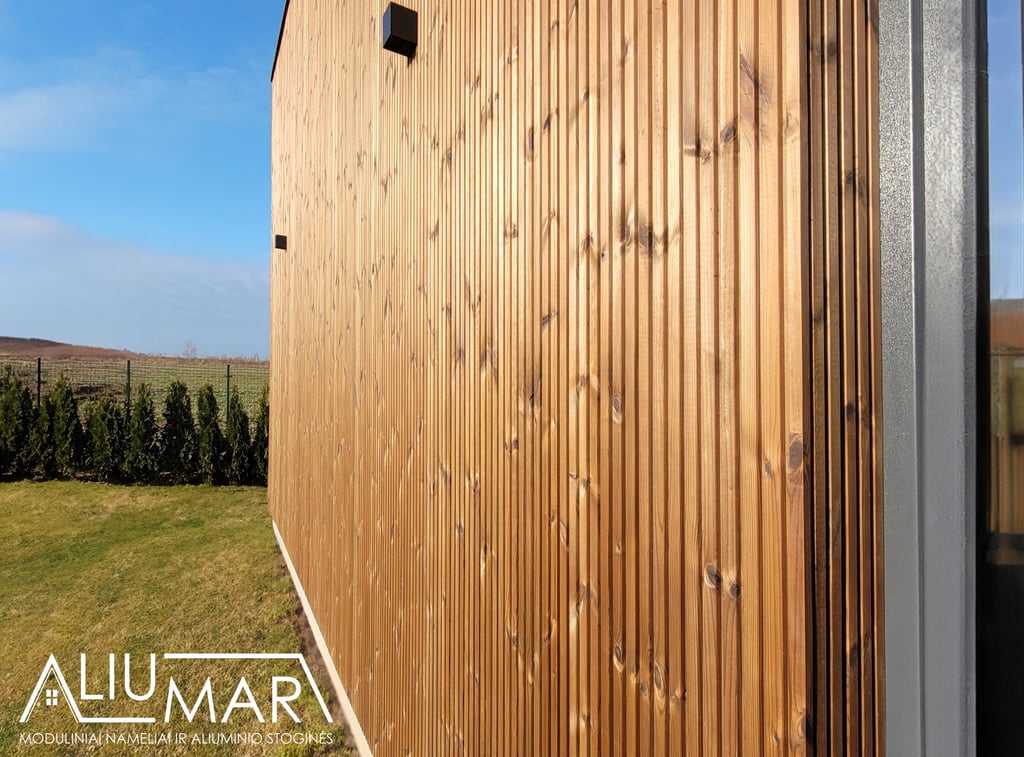 Wall insulation - 18-23 cm, ceiling insulation - 20 cm, floor insulation - 20 cm. The frame of the cabin is made of dried C24 profile wood. Thermal wood and CLASSIC profile tin are used for the facade. A++ class, three-pane plastic windows are installed.